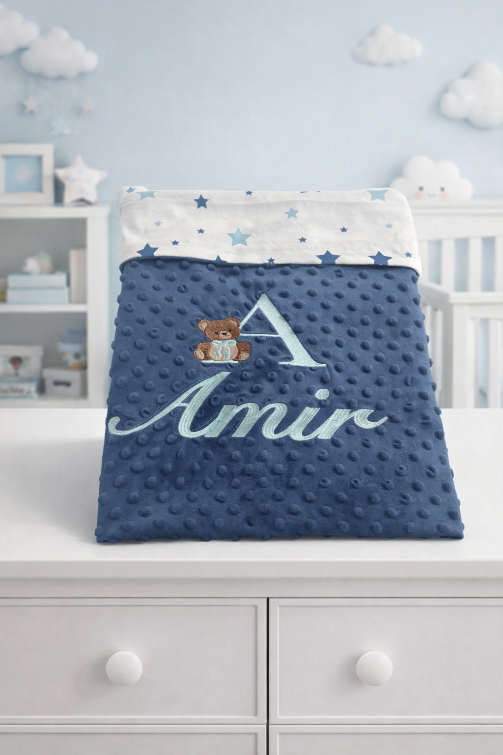 Soft, cozy, and customized with baby’s name and initial -