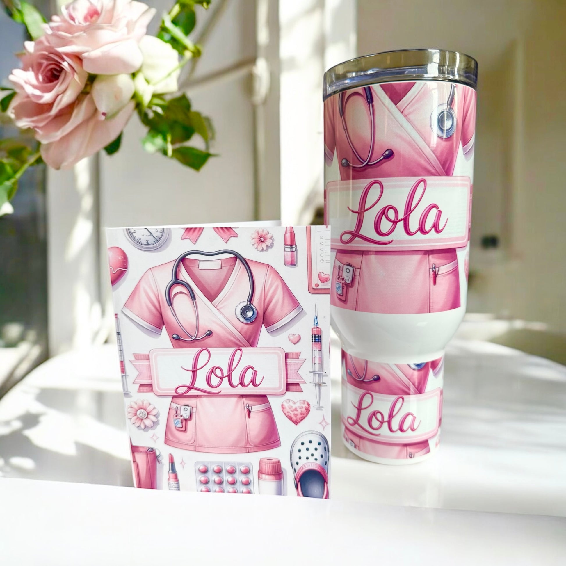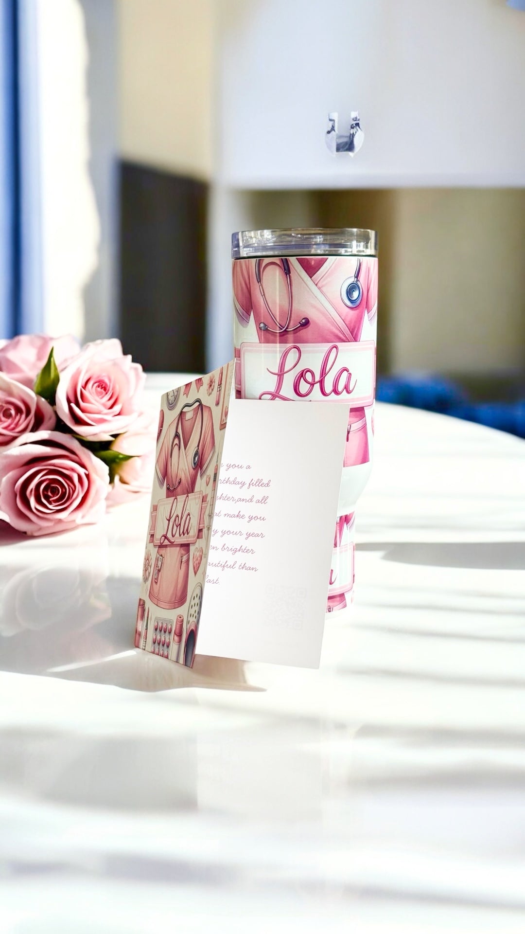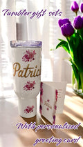 This thoughtful duo features a high quality stainless steel tumbler customized* with a name,message,or design of your choice. Paired with a matching greeting card,also personalized with your words. This set is ideal for birthdays,graduations,thank-you gifts or just because.