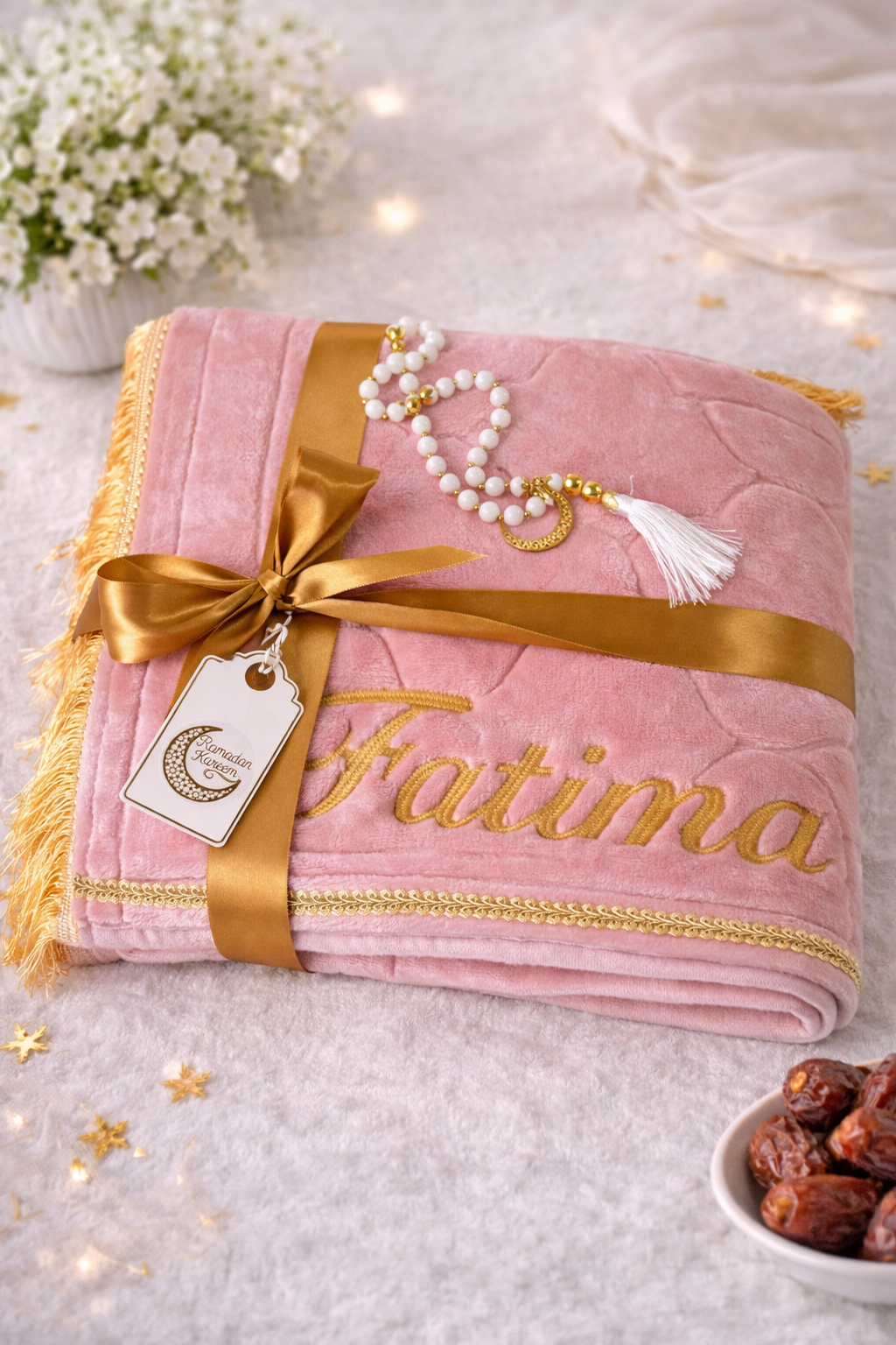 - Personalized embroidered plush prayer mat